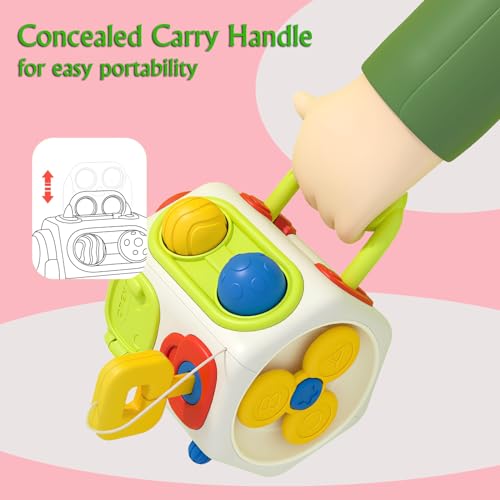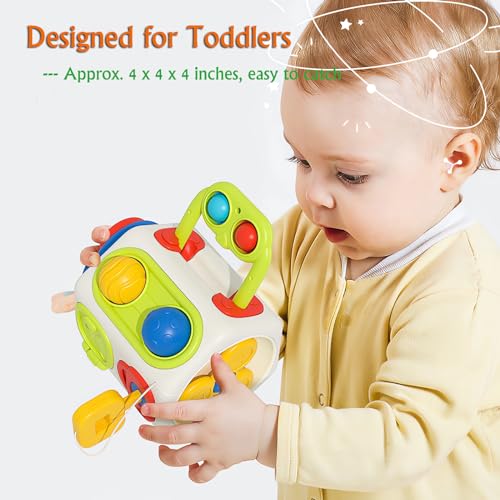 Montessori Toys For Toddler 1 2 3 4 Year Old: This 10-in-1 montessori busy cube includes Rocket Whistle, Simulated Switch, Rotating gear, Concealed Carrying Handle, Happy Pull Toy, Fidget Push Toy, Fidget Popper, Lock & Key, Spinning Spinner and Happy Gopher Game. Colorful and cute, specifically designed for 18+ months babies and 1-2-3-4 year old boys girls.
