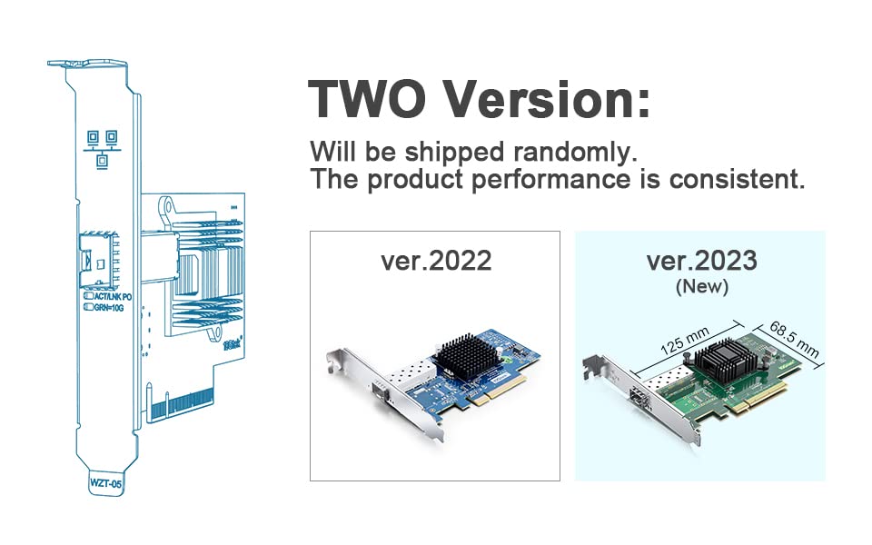 ✅SFP+ PCI-E NIC: 10Gb Single SFP+ Ports, apply to 10G SFP+ module/ DAC /AOC. PCI Express 2.0. 5.0 G T/s x 8 Lane, compatible with PCIE X8, X16 Slot.