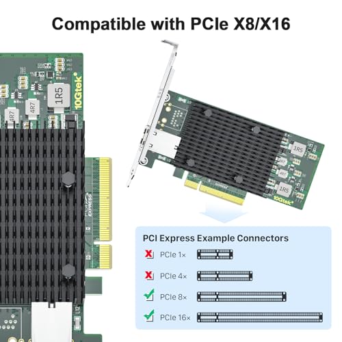 10Gtek® 10Gb PCI-E NIC Netzwerkkarte, Single Copper RJ45 Port, mit Intel X540-BT1 Controller, PCI Express Ethernet LAN Adapter Support Windows Server/Windows/Linux/ESX, Compare to Intel X540-T1