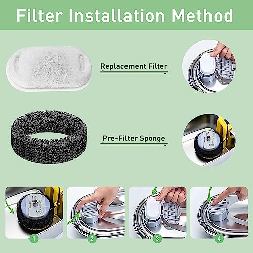 Geltender Geltungsbereich: Hohe Kompatibilität,Unsere Filter für Katzenbrunnen sind mit 6 verschiedenen Modellen von 108oz/3.2L und 67oz/2L Edelstahl-Katzenwasserbrunnen kompatibel.