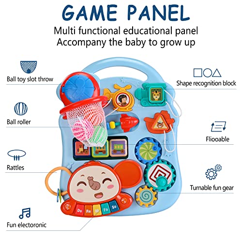 Multifunktionales Bildungspanel: Durch das Zusammenstellen verschiedener Spiele, die das Baby spielen kann, trainiert der Ballkorb die körperliche Koordinationsfähigkeit des Kindes, die Klaviertasten stimulieren die musikalische Wahrnehmung Ihres Kindes und die Blöcke zur Formenerkennung und die Zahnräder wachsen mit Ihrem Baby mit.