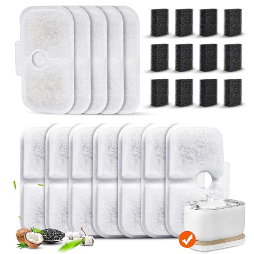 24 Stück Katzenbrunnen Filter kompatibel mit Petlibro 2,5 Liter Dockstream Katzenbrunnen PLWF005/PLWF115/PLWF105, 12 Filterkartuschen und 12 Schaumstoffschwämme