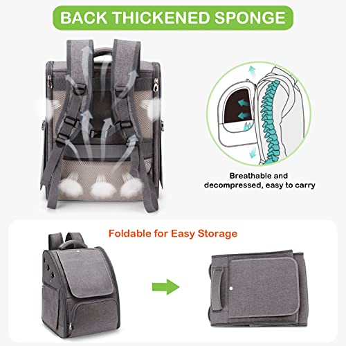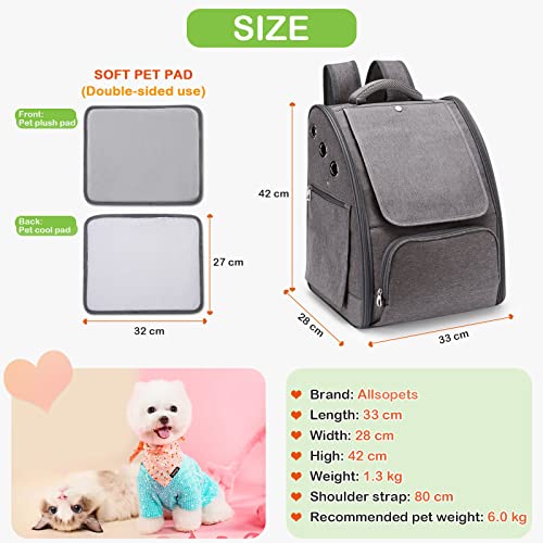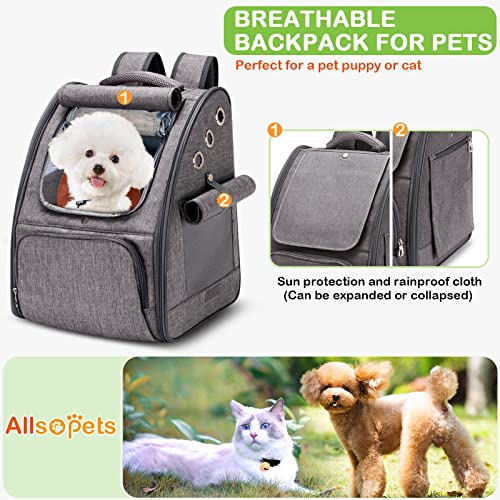 ALLSOPETS Katzenrucksack Hunderucksack Faltbarer Haustierrucksack Reise Camping Haustier-Taschen Atmungsaktiv Sonnenschutzvorhänge Geeignet für kleine Hunde Katzen Haustiere und Welpenrucksäcke Grau