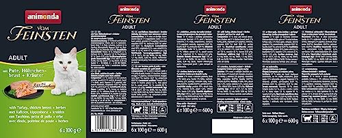 Animonda Vom Feinsten Adult Katzenfutter, Nassfutter für ausgewachsene Katzen, Schlemmerkern mit Pute, Hühnchenbrust + Kräutern, 6 x 100 g
