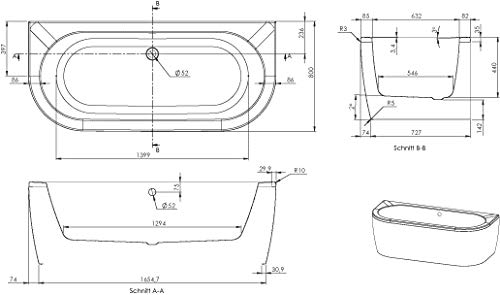 Montage: Im Handumdrehen gelingt Ihnen die Montage dieser minimalistischen Badewanne. Mithilfe von Wannenfüßen (nicht im Lieferumfang enthalten) stellen Sie das Exemplar auf. Nur noch einen separat erhältlichen Ablauf anschließen und schon kann das Badevergnügen losgehen!