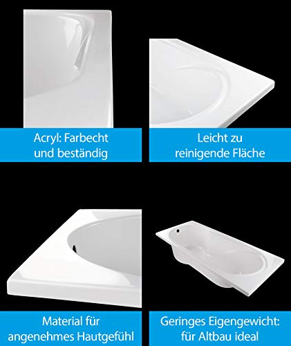 ➤ LANGLEBIG & ROBUST: Das hochwertige Material der Acrylwanne ist 4 mm dick und entspricht damit Markenqualität. Es zeichnet sich durch seine hohe Lebensdauer und das geringe Eigengewicht aus. So ist die Wanne auch für den Altbau geeignet.