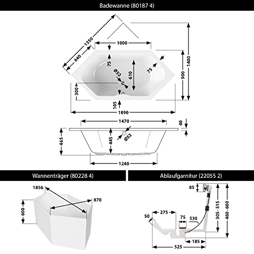 ➤ KOMPLETT-SET: Dieses Komplettset besteht aus einer Badewanne mit passender Excenter-Ablaufgarnitur mit Siphon und einem dämmenden Wannenträger. Alles ist ideal aufeinander abgestimmt.