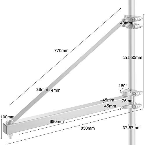 [Einfache Montage] Sichern Sie sich eine einfache und schnelle Montage. Der Schwenkarm kann ohne Bohren an ein Rohr bzw. Gerüst montiert werden | Die Montage kann auch direkt an die Wand oder idealerweise mittels einer Wandhalterung erfolgen | Das Montagematerial für eine Befestigung an einem Rohr ist im Lieferumfang enthalten.