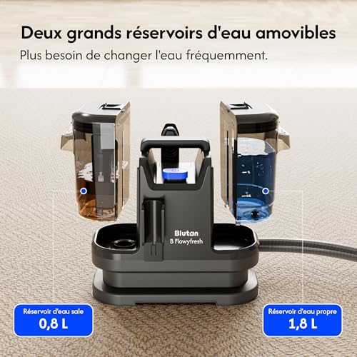B Flowyfresh Waschsauger, Polsterreiniger-Gerät für Sofa,Teppich,Polstermöbel,Fenster,Auto. Nass-Trockensauger,13 kPa, schnelltrocknend, viel Zubehör, 1,8 l + 0,8 l Wassertank, selbstreinigend