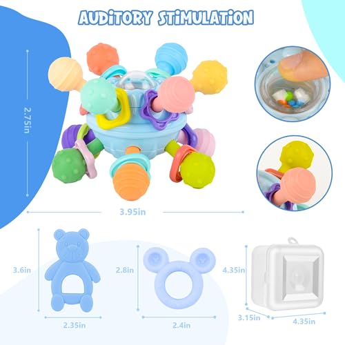 Baby Beißspielzeug – Montessori Baby spielzeug ab 3 Monaten – erhalten Sie zwei kostenlose Beißringe – pädagogisches Lernspielzeug für Kleinkinder (Blau)