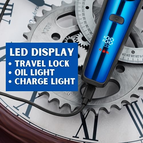 LED-Anzeige: Die LED-Anzeige (wird als Prozentsatz und Ladestatus angezeigt). Aktivieren Sie die Reisesperr-Funktion, indem Sie die Schaltertaste drei Sekunden lang gedrückt halten und erhalten Sie rechtzeitige Benachrichtigungen für die Schmierung der Klinge.
