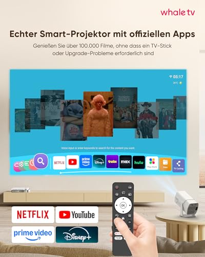 ➤【Kompatibel mit Netflix | Sofortiger Zugang zu endloser Unterhaltung】Dieser Mini Beamer verfügt über ein integriertes Smart-TV-Betriebssystem, das Ihnen sofortigen Zugriff auf Millionen von Videos bietet – inklusive Kompatibilität mit Netflix, Prime Video, YouTube und mehr. Entdecken Sie noch mehr Inhalte über den integrierten App Store. Mit einem offiziell lizenzierten System, das automatische Updates erhält, genießen Sie ein sicheres, stabiles und nahtloses Seherlebnis. Alles, was Sie tun müssen, ist zurückzulehnen, zu entspannen und die Vorstellung zu genießen