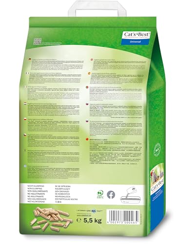 Cat’s Best Universal, 100 % pflanzliche Kleintierstreu, nicht klumpende Pellets aus Pflanzenfasern – für Katzen und andere Kleintierrassen, 5,5 kg/10 l