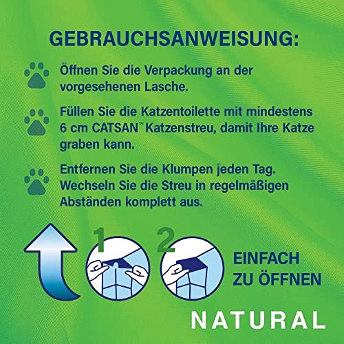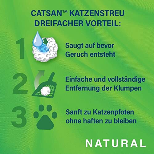 – CATSAN Natural geruchsbindende Katzenstreu absorbiert, bevor sich Geruch entwickelt. So bleibt die Katzentoilette hygienisch trocken und Ihre Katze fühlt sich wohl.
