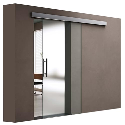 doporro Design Glasschiebetür 90 x 205 cm | 15mm Wandabstand | Schiebetür mit ESG-Sicherheitsglas | Zimmertür Glas vollflächig Satiniert mit Stangengriff aus Edelstahl
