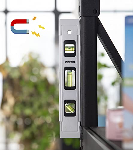 DOWELL Magnetische Torpedo-Wasserwaage 23 cm Mini-Libellen-Wasserwaage mit Aluminiumrahmen 180/90/45 Grad (2 Stück, Weiß)