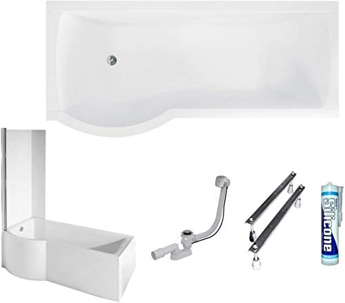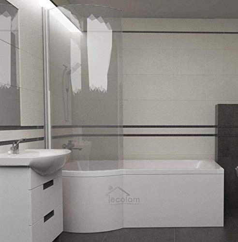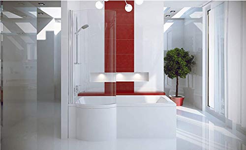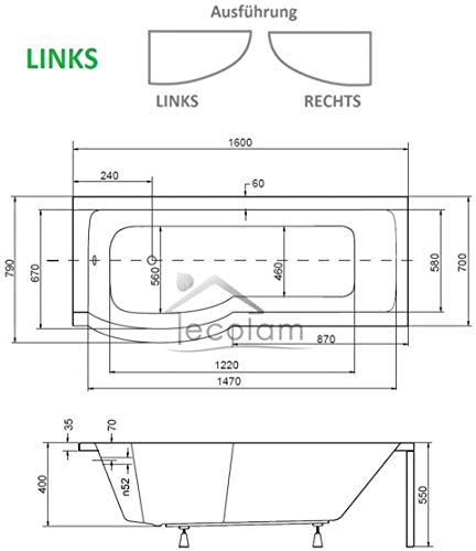 ECOLAM Duschbadewanne Set Badewanne + Badewannenabtrennung Duschwand Eckbadewanne Inspiro 160×70 cm LINKS Acryl weiß + Schürze Ablaufgarnitur Ab- und Überlauf Automatik Füße Silikon