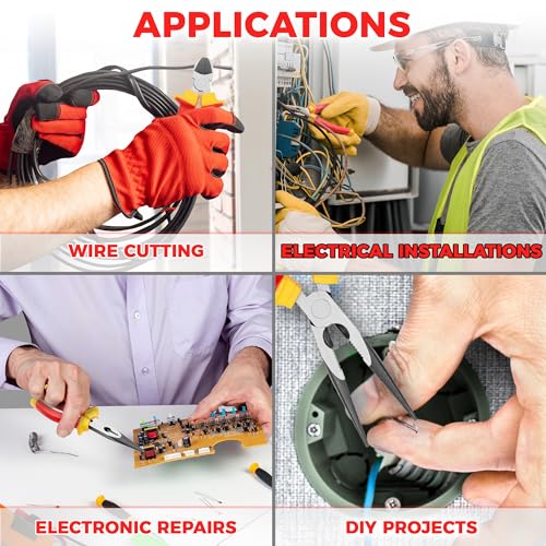 ELEKTRIKER-WERKZEUGSATZ – Erleben Sie müheloses Greifen, Halten und Schneiden von Kabeln und kleinen Gegenständen, während Sie Ihre Aufgaben nahtlos erledigen; Perfektes Werkzeugset für Linienrichter, Mechaniker und Handwerker; Ideal für die Reparatur von Elektronik und Haushaltsgeräten