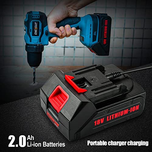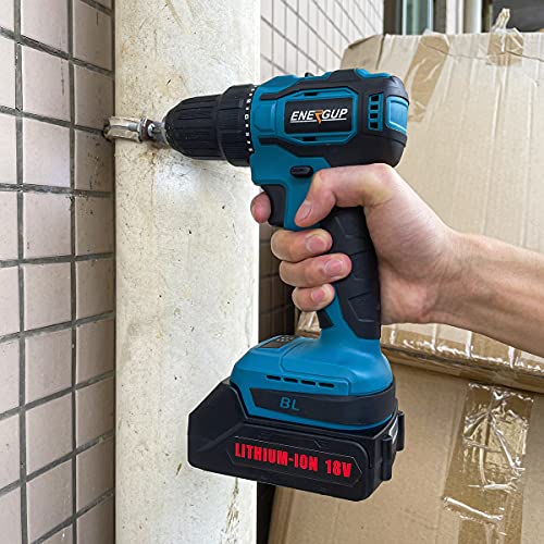 ENERGUP Akku Bohrschrauber 18V,Akkuschrauber mit 2.0Ah Akku,35Nm Akku Bohrmaschine,LED Licht Akkubohrer für Drehschrauben Garten DIY Projekt