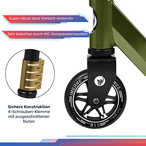 Fun Pro Stunt Scooter Insane2, Stunt Roller mit ABEC 9 Lager, Scooter mit Griptape, 110 mm Rollen mit Alufelgen, Non E Scooter für Kinder & Erwachsene, Cityroller bis 100 kg, 36 M Garantie