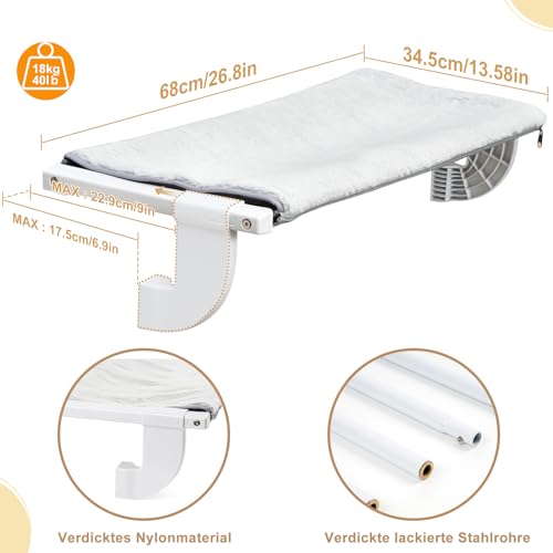 WICHTIGER HINWEIS: Unsere Katzenhängematte ist 26,8 Zoll/68 cm lang. Bitte messen Sie daher vor dem Kauf Ihren Installationsort. Es muss ein Spalt oder eine erhöhte Kante mit einer Tiefe von mehr als 3 cm/1,2 Zoll vorhanden sein, damit der Haken daran hängen kann. Bei Fragen können Sie sich gerne an uns wenden