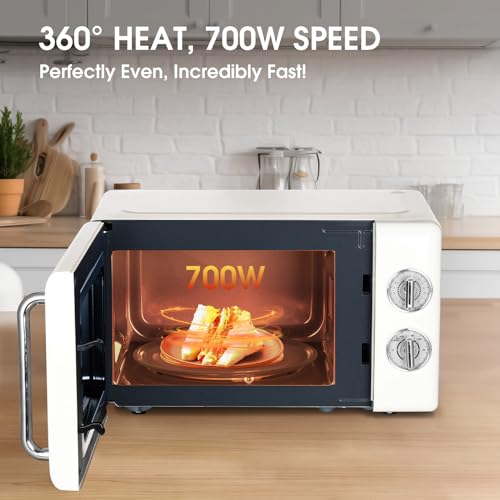⚡[Stilvolles Design] Unsere Mikrowelle im Retro-Design in elegantem Cremegelb verleiht Ihrer Küche ein einzigartiges Flair. Retro Mikrowelle mit einfacher Bedienung für Senioren