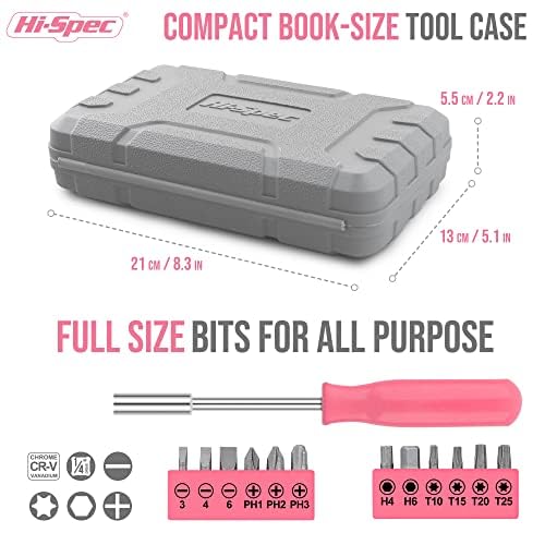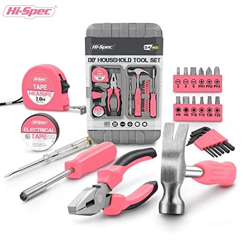 Hi-Spec 24tlg. Rosa Haushalts Mini Werkzeug-Set für Frauen passend für WG-Zimmer oder Unterwegs