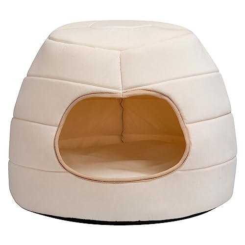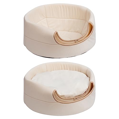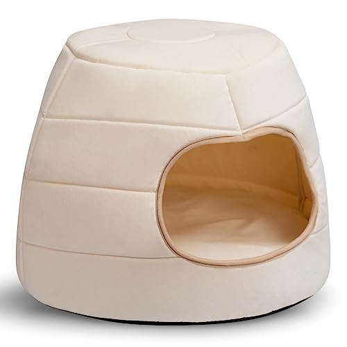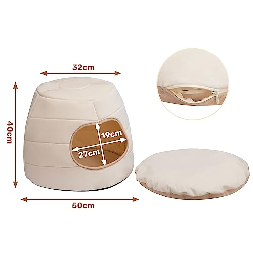Hollypet Katzenbett Kleines Hundebett, 2-in-1 faltbares Haustier-Höhlenbett Warmes Samt-Welpenbett Haustierbett, Beige, L(50 * 45cm)