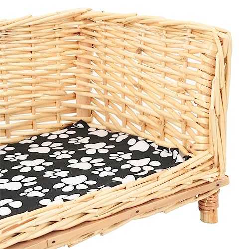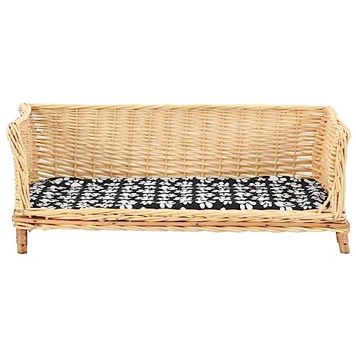 Natur pur im Wohnbereich: Die geflochtene Weide bringt rustikalen Charme ins Zuhause und passt dank dezentem Naturton & schwarz-weißem Bezug harmonisch zu Couch, Schlafzimmer oder Flur – ein optisches Highlight, das zugleich funktionales Hundemöbel ist.
