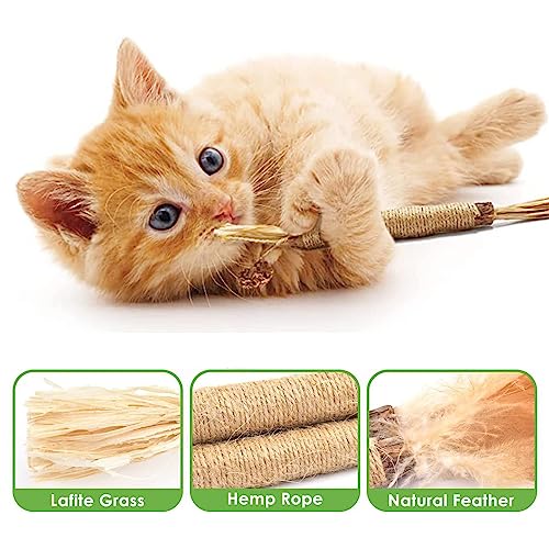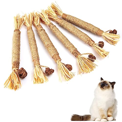 Katzenminze Sticks, 6 Stück Kausticks für Katzen, Katzenminze Spielzeugstäbchen für Katzen im Innenbereich, Kätzchen, Zahnreinigung ,Katzen Zahnpflege Spielzeug Dental Kausticks helfen bei Mundgeruch 【Natürliches Material】 aus natürlichen Kräutern, hochwertigen natürlichen Rohstoffen, machen Kätzchen glücklich und erfrischend, die Früchte nagen, Hanfseilfixierung macht das Spielzeug bissfester, baut Stress ab und lässt Ihre Katze sich ruhig und entspannt fühlen. 【Die perfekte Kombination】 Sie erhalten 6 Molaren-Kausticks mit einer Länge von ca. 23cm Jeder Molaren-Kaustick hat an Enden natürliche Früchte. 【Interaktives Katzenspielzeug】 Sie können mit Ihrem Haustier spielen und es als Katzenstock verwenden, um die Interaktion mit der Katze zu erhöhen, sind unsere Spielzeuge für Katzen jeden Alters und jeder Rasse geeignet. 【Aromatischer Geruch】 Zahnkaustäbchen haben einen starken aromatischen Geruch, der Katzen reizt. Tiere werden diese Minzspielzeuge mögen. Darüber hinaus helfen Katzenminze-Sticks auf pflanzlicher Basis, Stress abzubauen und die arterielle Spannung der Katze zu stabilisieren. 【Breite Anwendungen】 Geeignet für Katzen, Kätzchen, ideal für drinnen oder draußen. Als Geschenk für Katzenspielzeug. Wenn Sie nicht zu Hause sind, können Katzen Energie verbrauchen und sich bewegen, ohne sich einsam zu fühlen.