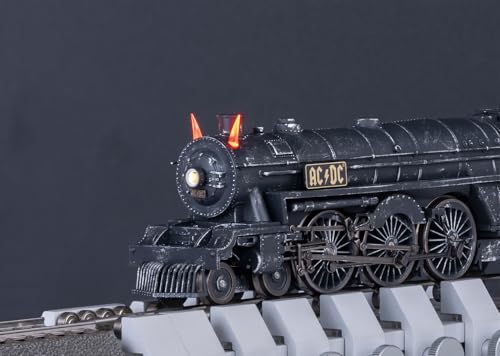 Mit Digital-Decoder mfx+ und umfangreichen Licht- und Soundfunktionen. Geregelter Hochleistungsantrieb mit Schwungmasse im Kessel. Drei Achsen angetrieben. Haftreifen. Lokomotive und Tender weitgehend aus Metall. Serienmäßig eingebauter Raucheinsatz, mit geschwindigkeitsabhängigem, dynamischem Rauchausstoß, digital schaltbar. Frontscheinwerfer mittig auf der Rauchkammertür der Lok und eine Lampe an der Tenderrückseite konventionell in Betrieb, digital schaltbar. Die Beleuchtung des Frontscheinwerfers kann auf rot umgeschaltet werden. Die AC/DC typischen Teufelshörner sind beleuchtet und können digital zugeschaltet werden. Führerstandsbeleuchtung und Feuerbüchsenflackern digital schaltbar. Beleuchtung des Tender-Durchgangs digital schaltbar. Beleuchtung mit wartungsfreien warmweißen und roten Leuchtdioden (LED). Verstellbare Kurzkupplung mit Kinematik zwischen Lok und Tender. Am Tender kinematikgeführte Kurzkupplung mit NEM-Schacht. Pufferhöhe an Lok und Tender nach NEM. Bremsschläuche, Schraubenkupplungsimitationen und geschlossene Zylinderdeckel liegen bei. Länge über Puffer ca. 24,5 cm. Dieses Modell finden Sie in Gleichstrom-Ausführung im Trix H0-Sortiment unter der Artikelnummer 25492.