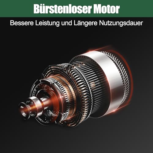 Leistungsstarker Motor: Schlagbohrschrauber ist mit Bürstenlosen Motor. Vergleich mit der herkömmlichen Kohlebürstenmotoren hat der Bürstenlose Motor die bessere Leistung und geringerer Verschleiß, der bietet Ihnen besser Nutzererfahrung