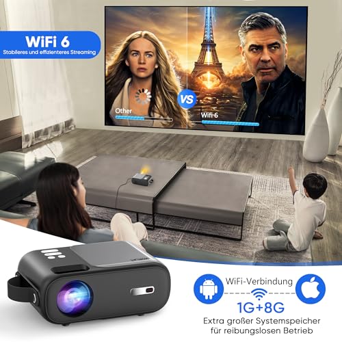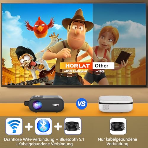 Mini Beamer, Horlat 5G WiFi Bluetooth Projektor mit YouTube,Netflix Vorinstallieren, Tragbarer Projektor 1080P Unterstützt, Auto 4P/4D Trapezkorrektur, 50% Zoom, Kompatibel mit iOS/Android/TV Stick