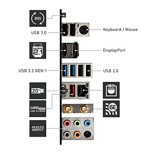 WI-FI 6E – Die Netzwerkhardware umfasst ein Intel Wi-Fi 6E Modul mit Bluetooth 5.2 und 2,5Gbps LAN; Anschlüsse auf der Rückseite umfassen USB 3.2 Gen 2×2 Typ-C (20Gbps), HDMI 2.1 & DisplayPort 1.4 und 7.1 HD Audio mit Audio Boost
