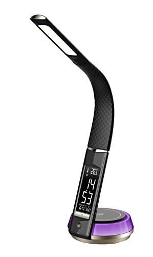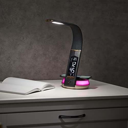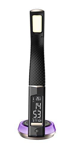 Die Northpoint LED Schreibtischlampe überzeugt mit ihrem modernem und zeitlosem Design. Sie hat einen Lichtauslass, welcher sich flexibel einstellbar ist. Die Schreibtischlampe kommt mit vielen Features. Außer als Lichtquelle, fungiert die LED Schreibtischlampe auch als Ladestation für mobile Endgeräte. Sie verfügt über eine QI-Ladestation. Zudem wird über das integrierte Display die Uhrzeit und die Temperatur angezeigt. Über die Touch-Taste können Sie die Lichtfarbe individuell einstellen (Warmweiß / Kaltweiß / Neutralweiß). Dieses Produkt, welches auch optisch mit seiner Lederoptik überzeugt, ist an technologischen Kombinationen kaum zu übertreffen.