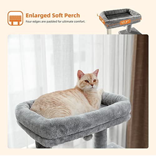 PAWZ Road Luxus Katzenbaum Gross Katzenspielturm, Activity Center, stabil und stabil, Katzenbaum mit Hängematte und schönem Katzenhaus grau 143cm