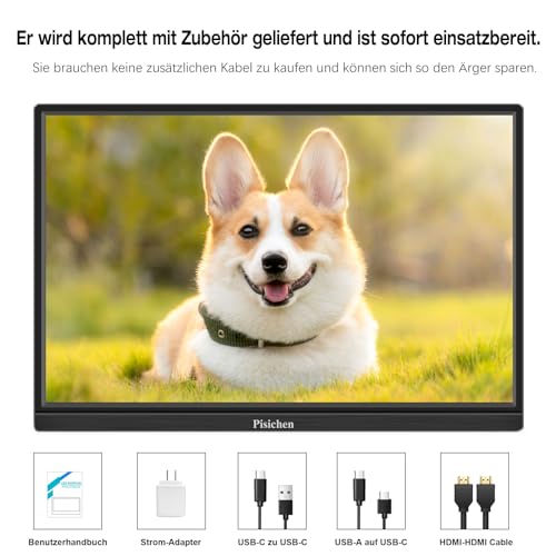 Pisichen Tragbarer Monitor, 16 Zoll Portable Monitor FHD 1920 x 1200P HDMI USB C IPS-Display HDR Augenpflege, Zweiter Externer Monitor für Laptop PC Computer Xbox Switch Telefon Ras Pi