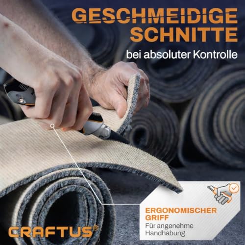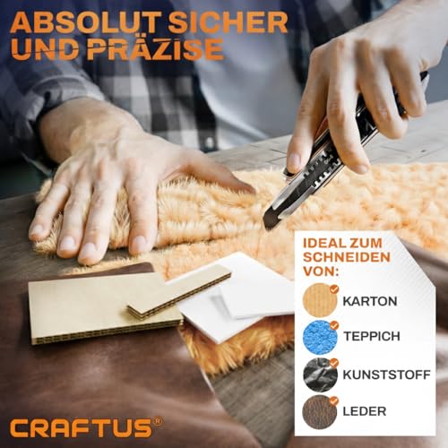 BESONDERS SICHER – Der ergonomische Anti-Rutsch-Griff & eine feste Arretierung der Klingen machen das Schneiden mit dem Cuttermesser extra sicher & angenehm – Ideal für Karton, Bauschaum & Tapete!
