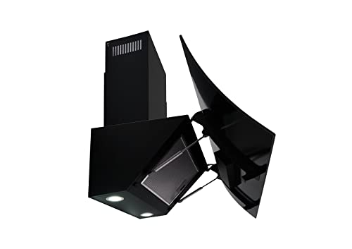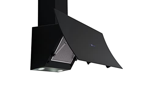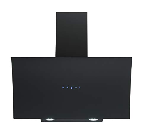 Respekta Dunstabzugshaube kopffrei/Dunstabzugshaube schräg 90 cm/Edelstahlgehäuse mit Glasschirm in Schwarz/Abluft – und Umluftfunktion / CH55090SA++ / A++ / 42–63 dB