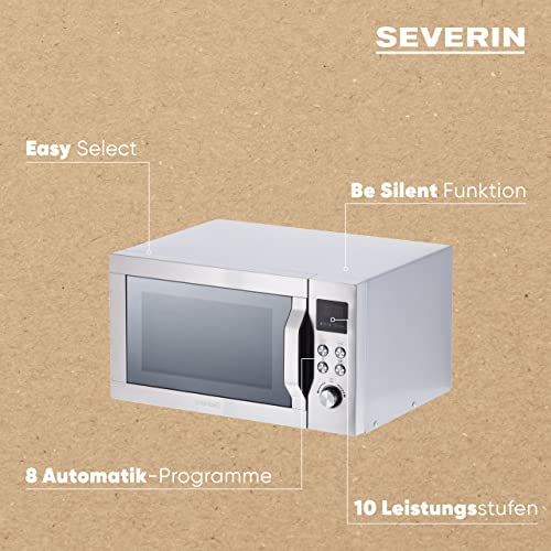 SEVERIN Mikrowelle mit Grill und Heißluftfunktion 3-in-1, Mikrowellengerät zum Auftauen, Garen und Erhitzen, Mikrowelle mit Drehteller, Edelstahl-gebürstet/silber, MW 7774
