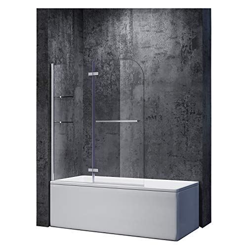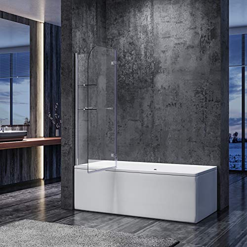 Duschwand für badewanne Inklusive zwei eleganten Eckablagen aus 6mm Sicherheitsglas mit Halterungen aus Zink-Druckguss,Installationsanleitung und Accessoires