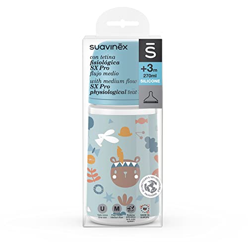 - Suavinex Babyflasche mit der neuen geraden Babyflasche, die einen bequemeren Griff für das Baby bietet. Der Sauger SX Pro wird von der spanischen Gesellschaft für Kinderzahnheilkunde (SEOP)