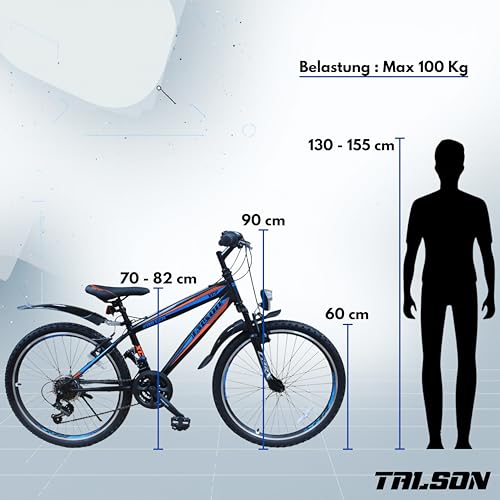 Talson 24 Zoll Mountainbike Fahrrad MIT GABELFEDERUNG & Beleuchtung 21-Gang Shimano Faster BBO