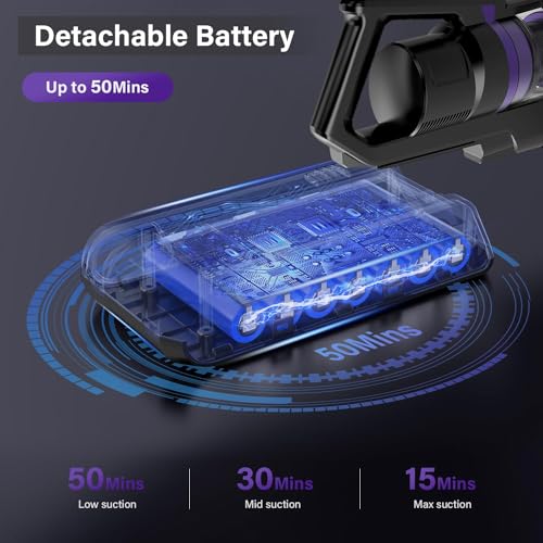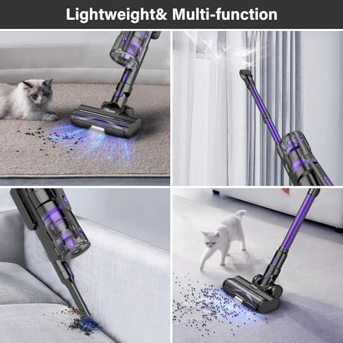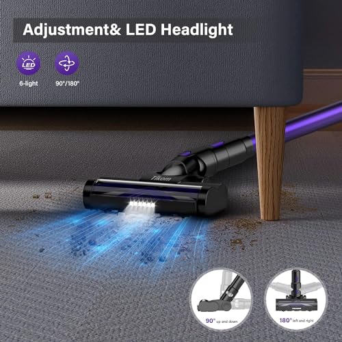 Tikom V700 Akku Staubsauger 450W 33000pa Saugkraft, 40Mins Max, 6 in 1 Staubsauger Kabellos mit 1.3L Staubbehälter, Ideal für Teppich, Tierhaare, Hartboden, Lila