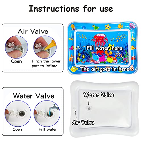 Einfach zu Bedienen: Füllen Sie einfach Wasser in die Mitte der Wassermatte und blasen Sie den Rand der Bauchzeit-Wassermatte mit Luft auf. Die wasserspielmatte ist faltbar, sodass sie sie im leeren zustand problemlos verstauen und überall hin mitnehmen können.