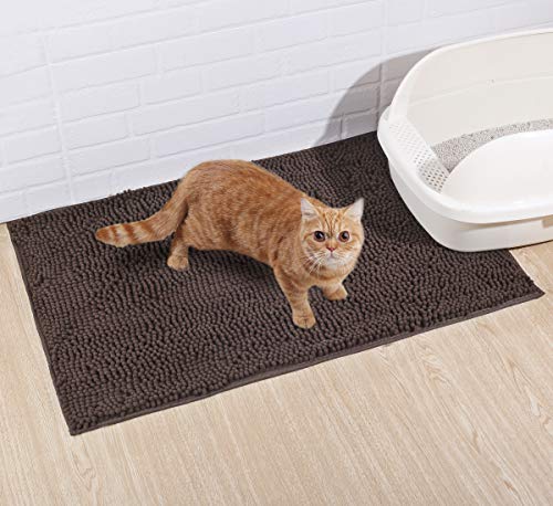 VIVAGLORY Katzenstreu-Matte, Streufangmatte, 80 × 50 cm Katzen Katzentoiletten Teppich mit Wasserdichter Rückseite, Superweich für Die Pfoten der Katze, Maschinenwaschbar, Braun
