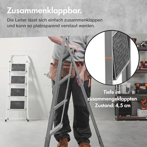 HEIMWERKEN SIE ÜBERALL: Die VonHaus Haushaltsleiter mit Tragegriff ist ideal für Dekor- und Reinigungsarbeiten in Heim und Garten. Mit dieser Stehleiter erreichen Sie selbst die schwierigsten Ecken.