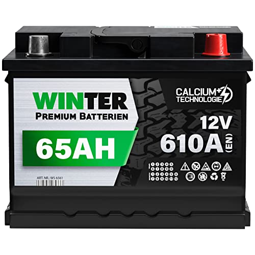 WINTER Premium Autobatterie 12V 65Ah 610A/EN Batterie statt 55Ah 56Ah 60Ah 61Ah 62Ah 63Ah 64Ah