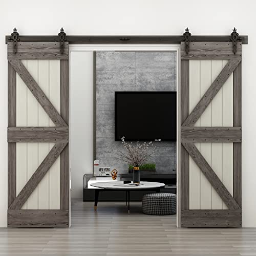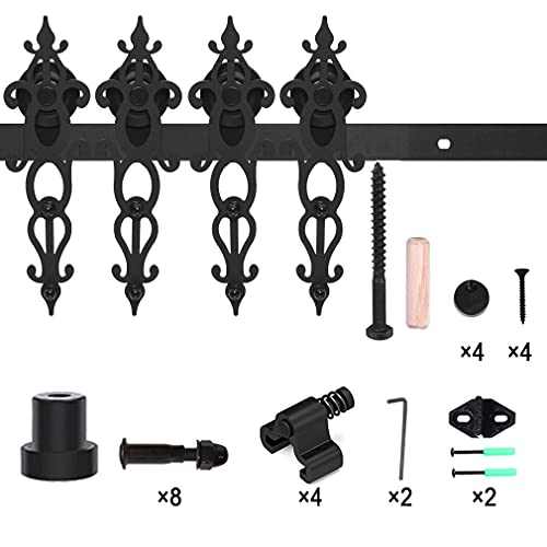 WOLFBIRD 274cm (9FT) Schiebetürsystem Schiene Schiebetürbeschlag für Doppelte Holztüren (Flower Shape Hanger Roller Set)