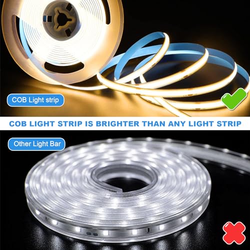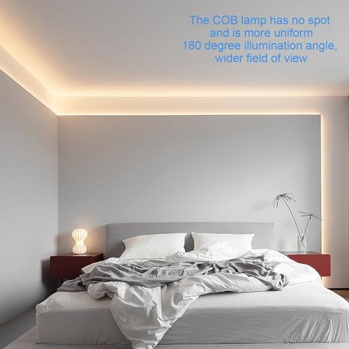 【Hochheller COB-Lichtstreifen】: Dieser COB-Lichtstreifen hat superhelles und weiches Licht, sehr gleichmäßiges und ausgewogenes Licht, keine hellen Flecken, keine dunklen Bereiche, 320 Lampenperlen, RA>90, sehr augenfreundlich.